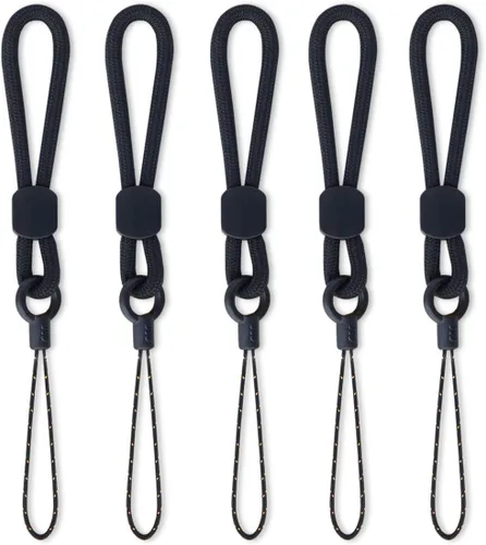 YOUOWO Paquete de 5 cordones de anillo de cuerda corta, correa de dedo negra, para fundas de teléfono, llaves, unidad flash USB, teléfono celular,