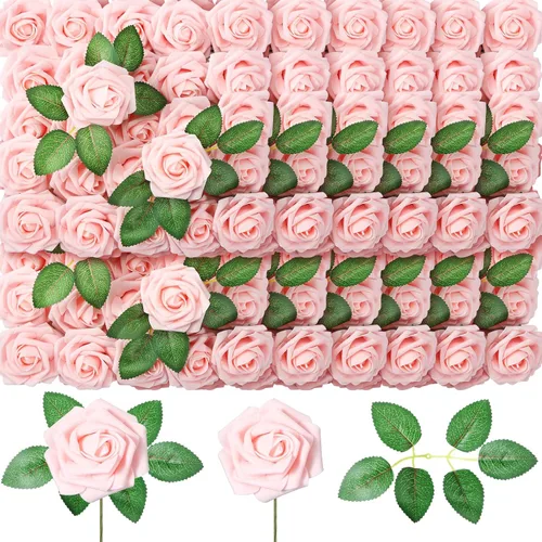Rosas falsas color rosa champán: recibirás 200 cabezas de rosas artificiales y 100 hojas de tallo flexibles, puedes aplicarlas solo como accesorio o combinadas en un ramo para satisfacer las necesidades de tu boda o fiesta, por lo que está lleno de ambiente elegante y puro Tamaño adecuado: la cabeza de rosa sintética mide 3.15 pulgadas de largo, el tallo mide 6.7 pulgadas, las hojas de rosa adjuntas miden 7.9 pulgadas; el ramo de rosas artificiales combinado se ve hermoso y encantador; estas rosas son fáciles de doblar y cortar sin problemas de desprendimiento, muy adecuadas para los amantes del bricolaje para hacer maravillosas artes florales o manualidades Material de calidad: estas rosas realistas de color rosa champán están hechas de exquisita espuma de polietileno, y las hojas de rosa están impresas en tela de seda con textura realista y uniforme, dándoles el aspecto de rosas frescas. En comparación con las rosas reales, las rosas sintéticas reutilizables se mantienen brillantes y vibrantes durante mucho tiempo con menos mantenimiento requerido Fácil de usar: estos tallos de flores de plástico están soportados por alambres de metal internos, que se pueden doblar o cortar fácilmente según sea necesario, fácil de lograr proyectos florales creativos de bricolaje, se pueden convertir en ramos de boda, boutonnieres, bolas de beso, flores de pastel, etc., hacen que tu arreglo floral sea absolutamente llamativo Amplia aplicación: las rosas artificiales se sirven ampliamente en fiestas de propuestas, compromisos, centros de mesa de boda, ramo de despedida de soltera, ramo de mano de dama de honor, baby shower, celebración de festivales; añade un poco de dulzura romántica al día de San Valentín y día de la madre con estos ramos de rosas rosa champán a granel. Además, también son agradables en jarrones como decoración para salas de estar, baños
